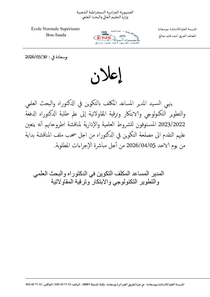 إعلان لطلبة الدكتوراهmeme thameur28 أبريل، 2026غير مصنف اعلان لفاىدة الطلبة من اجل وضع ملفات المناقشة – Copie (1)تنزيل