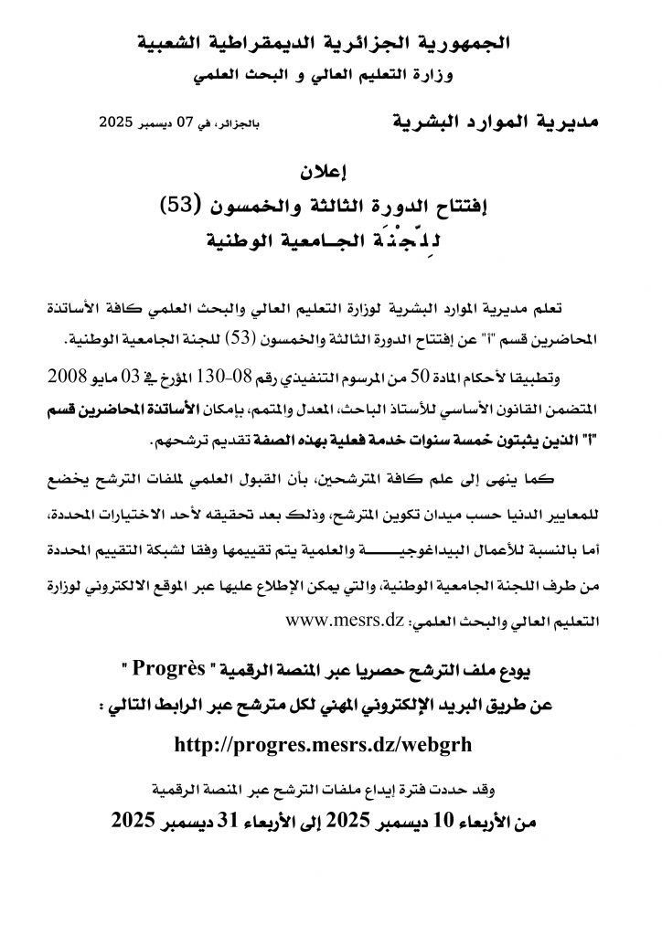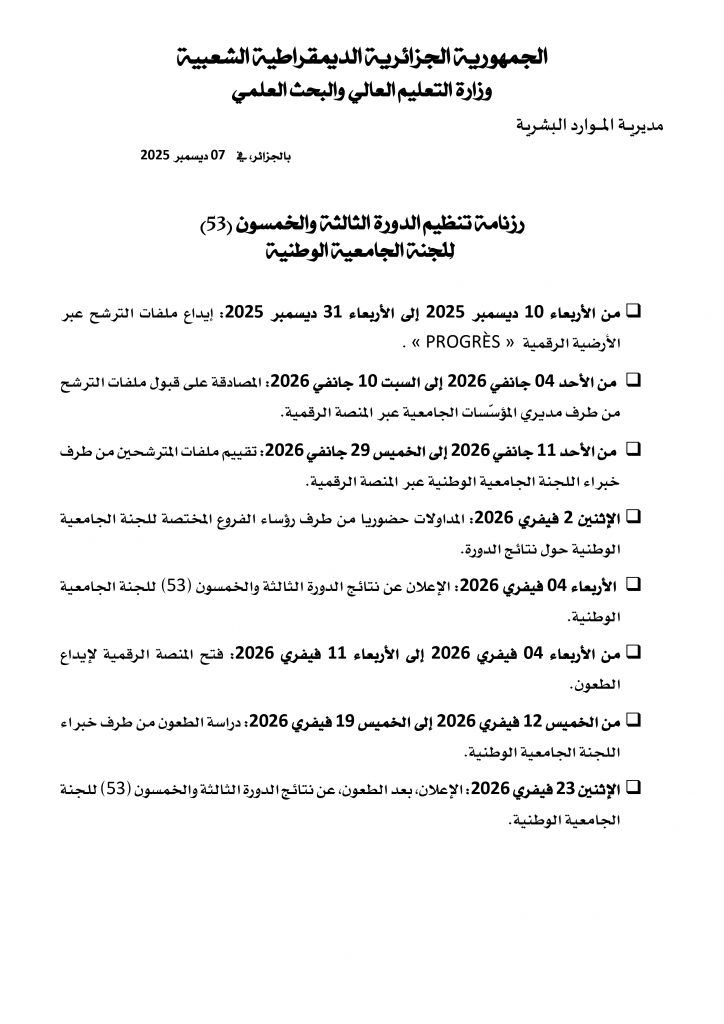 الإعلان عن الدورة 53 للجنة الجامعية الوطنية.meme thameur15 ديسمبر، 2025غير مصنف رزنامة تنظيم الدورة الخمسون -53- للجنة الوطنية الجامعية
